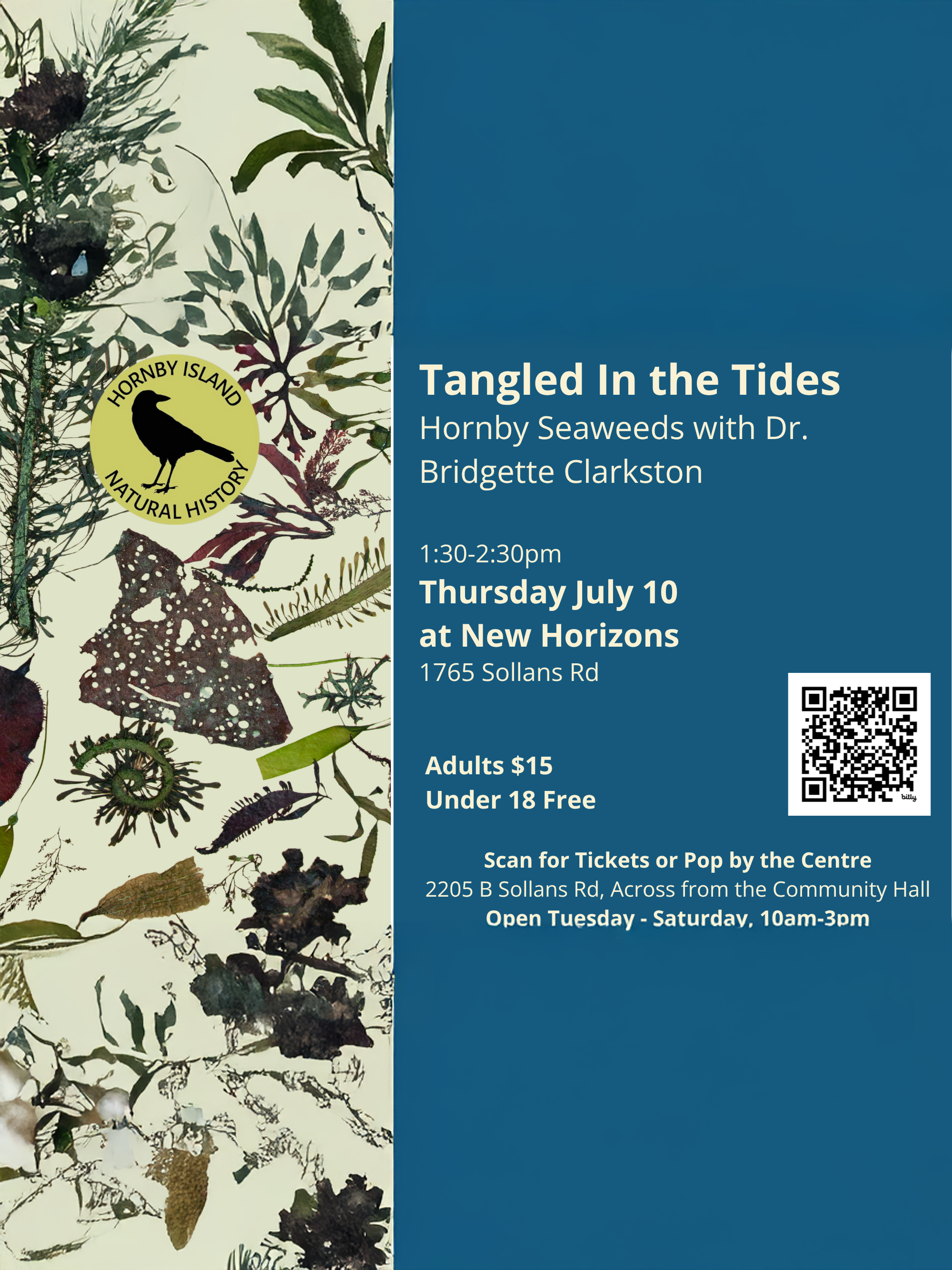 This event is sponsored by Hornby Island's Natural History Society, with ticket sales going to Conservancy Hornby Island, with support from the Canada Council for the Arts, the Canadian Writer's Union, and Heritage House publishing.