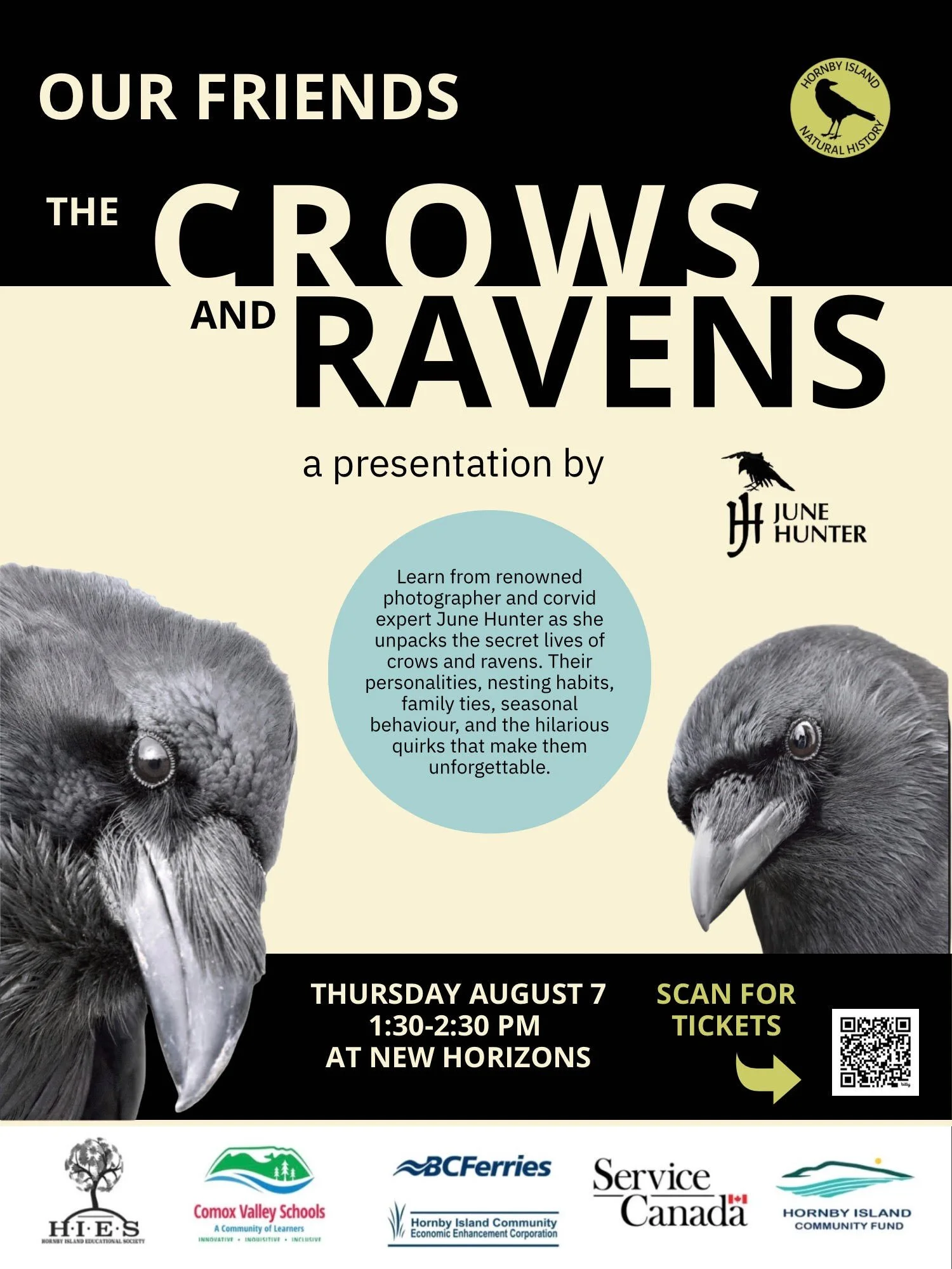 Back by popular demand, Join us in what is bound to be an intriguing blend of science and storytelling as June introduces us to her Corvid neighbours. From their eerie intelligence to their complex social lives, June weaves personal observation with current research to explore what makes these birds so compelling—and how they continue to shape, and be shaped by, the landscapes we share.