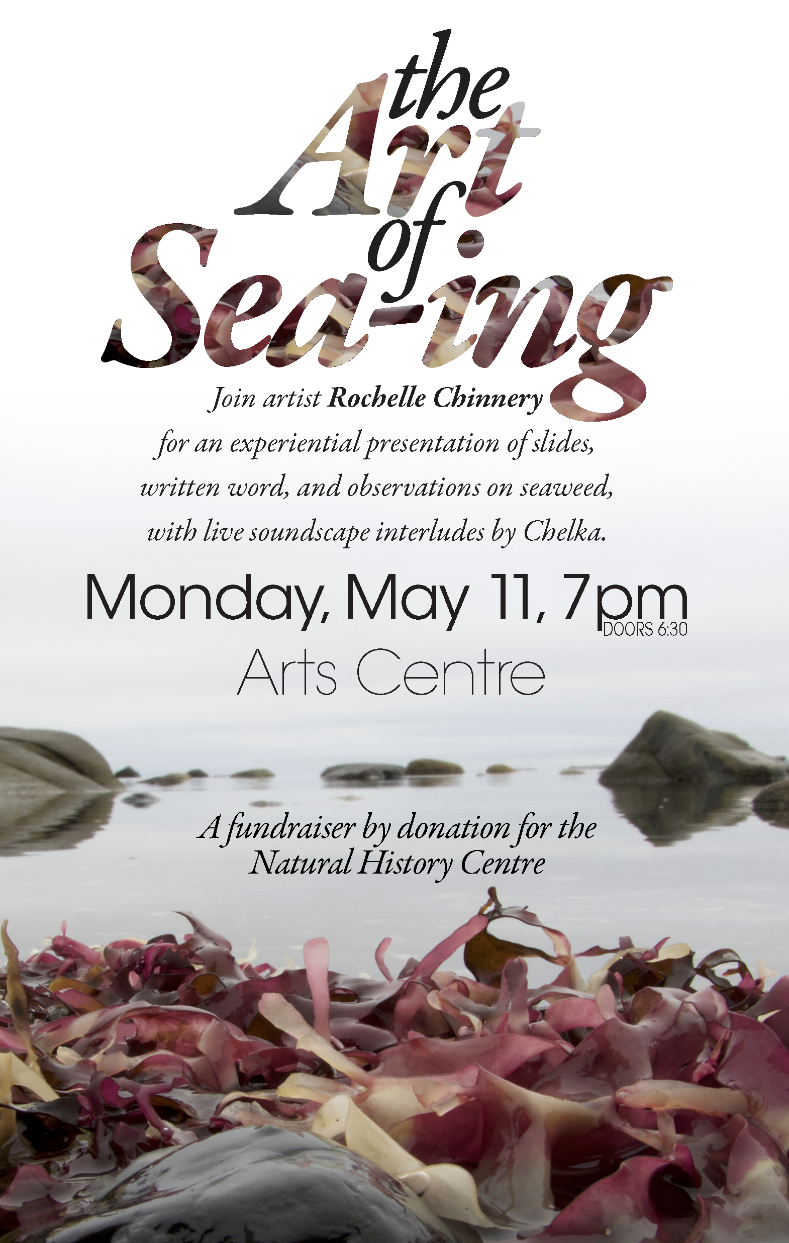 On May 11th Rochelle Chinnery will be presenting a slideshow and talk about her seaweed photography at the Hornby Island Arts Centre. These abstracted images are part of a larger project and collection of ceramic work pertaining to shore ecology and climate change. This talk is about finding beauty on the foreshore, artistic process, and a personal journey into connection to place.